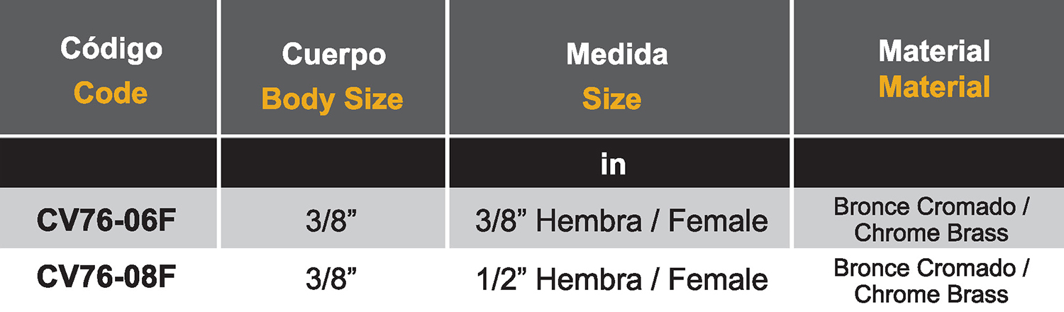 CV76-F Acople Rápido Neumático Hembra de 3/8″
