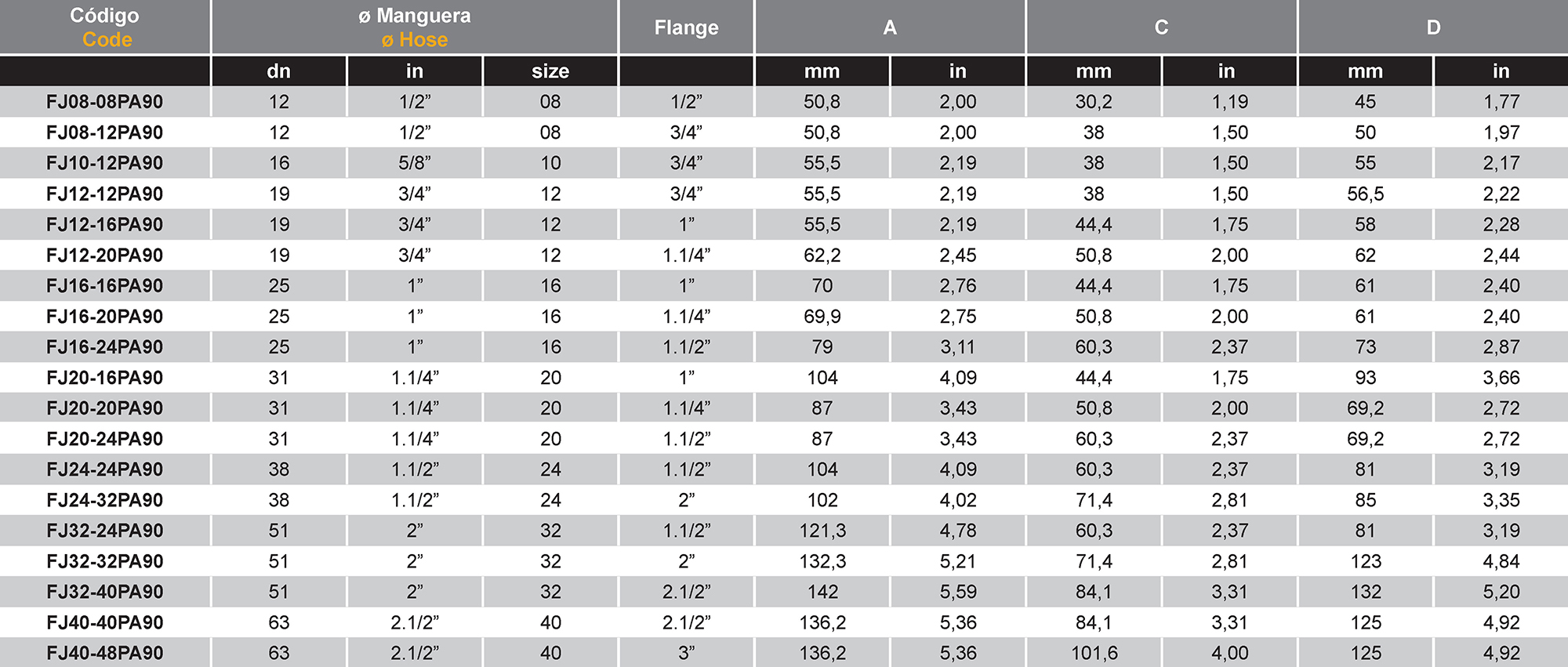 FJPA90 Flange a 90º Código 61 – SAE 3000 PSI