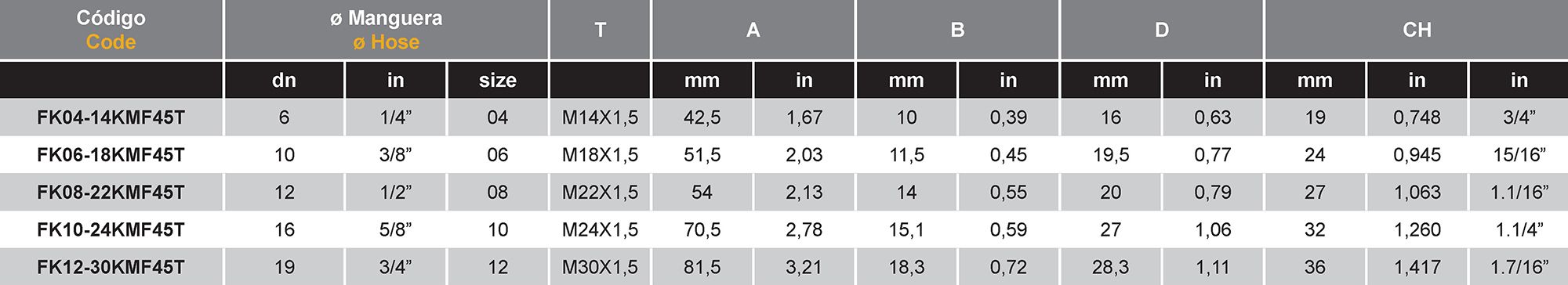 Sé el primero en valorar “FKKMF45T Hembra Giratoria a 45º Estilo Komatsu”