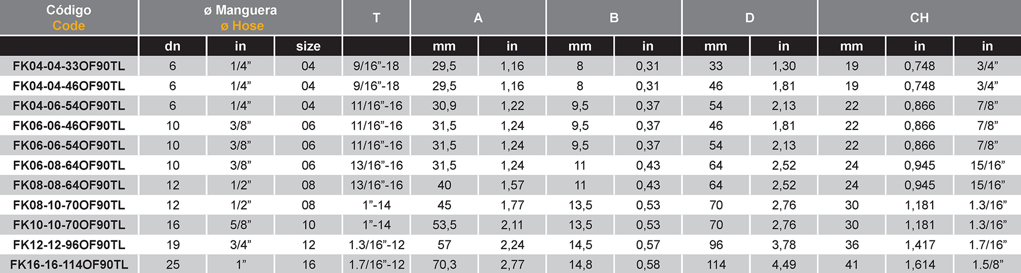 Sé el primero en valorar “FKOF90TL Hembra Giratoria a 90º ORFS Codo Largo”