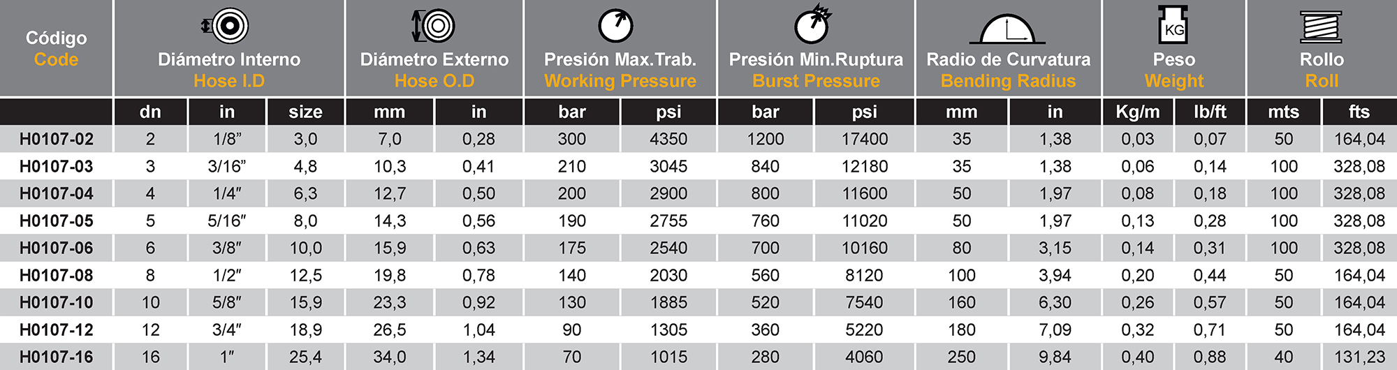 H0107 Manguera Hidráulica SAE 100R7 No Conductiva