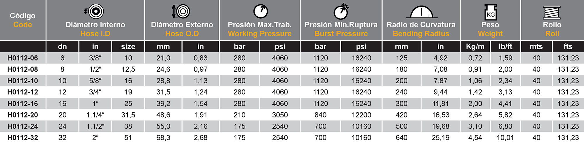 Tubo Interno: Mezcla de goma sintética de nitrilo-butadieno, resistente al aceite