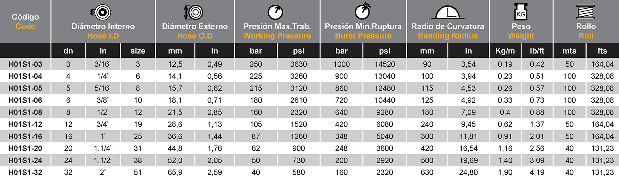 H01S1 Manguera Hidráulica 1SN Excede SAE 100R1, Cubierta Lisa