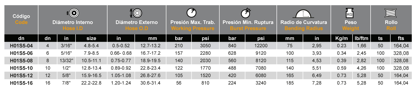 Tubo Interno: Mezcla de goma sintética de nitrilo-butadieno, resistente al aceite,